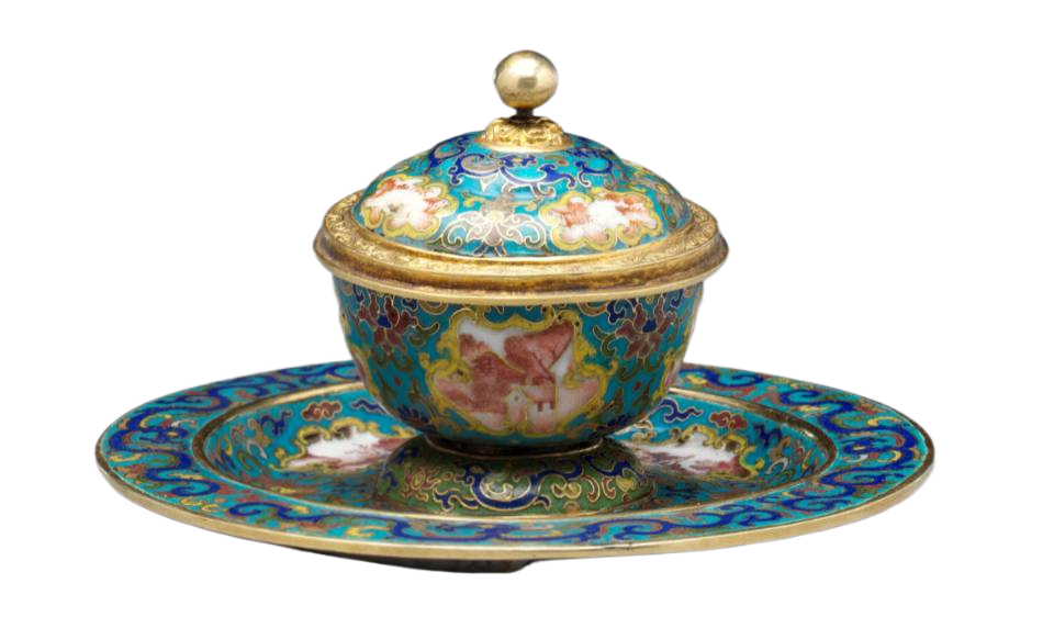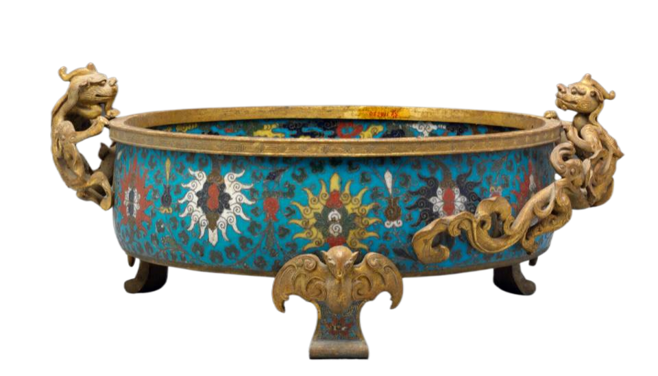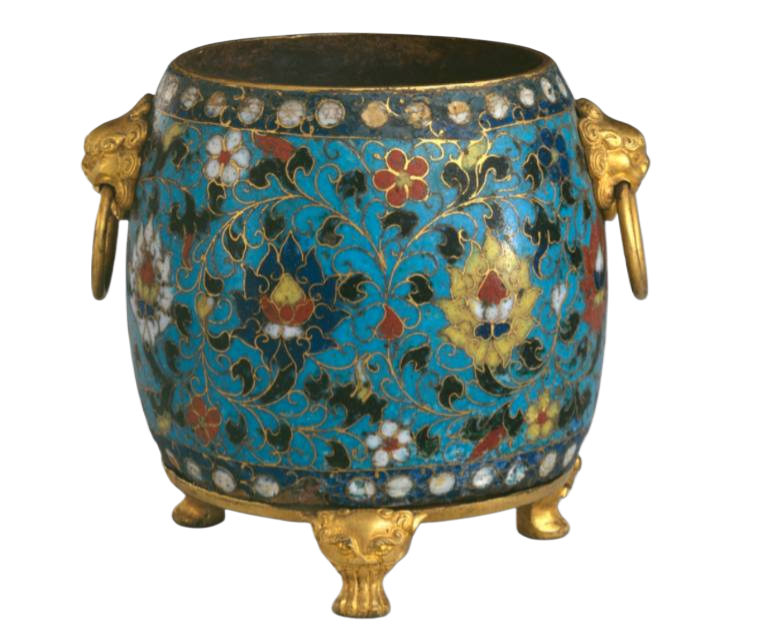 在13世纪,随着蒙古帝国疆域的扩张与丝绸之路的繁荣,珐琅工艺经由阿拉伯地区跨越千山万水传入中国。彼时的中国,手工业技术已具备深厚底蕴,珐琅工艺与本土金属铸造、捶揲等传统工艺相互碰撞融合,催生出早期景泰蓝的雏形。由于工艺尚处于探索阶段,早期制品的胎体制作较为朴拙,釉料配方与烧制技术也未臻完善,器物表面常呈现出色彩层次单一、釉面平整度欠佳等特点。但异域风格的缠枝莲纹、几何图案装饰,为作品注入了独特的艺术气质,在贵族阶层与宗教场所中逐渐崭露头角,成为当时独具特色的工艺品类,也为后续的发展奠定了基础。
